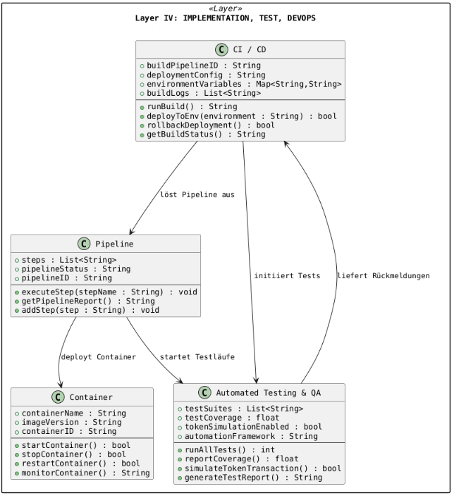 - Layer IV: IMPLEMENTATION, TEST, DEVOPS
