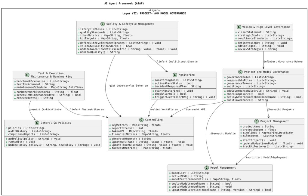 | Layer VII: PROJECT- AND MODEL GOVERNANCE | This layer provides governance, project, and model management. It defines strategic visions and manages governance rules as well as quality and monitoring processes—often incorporating token-based mechanisms and external audits. |